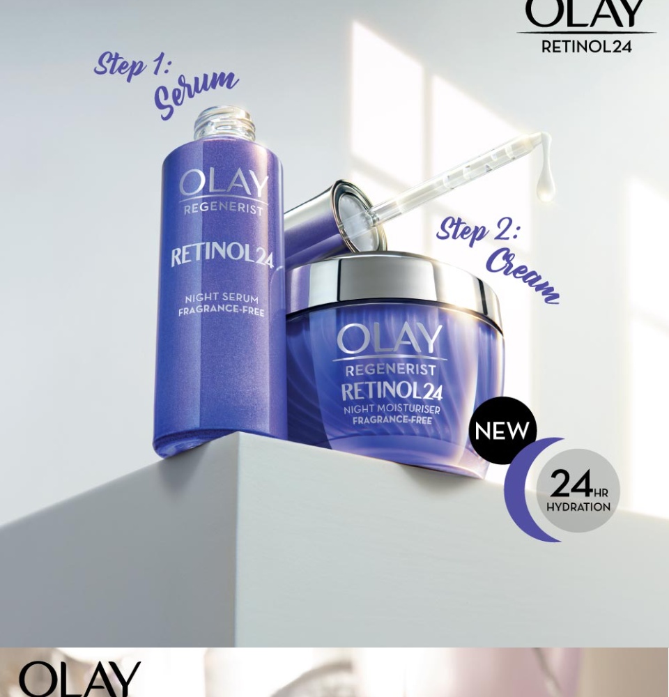 • Wake up to plumper, younger-looking skin with Olay Retinol24^