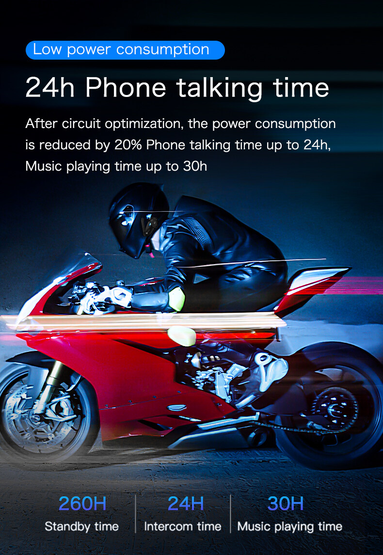 Two-way full-duplex, 2-rider can talk at the same time,the rider could easily connect the intercom to phone. And It's more convenient for people to talk while riding.