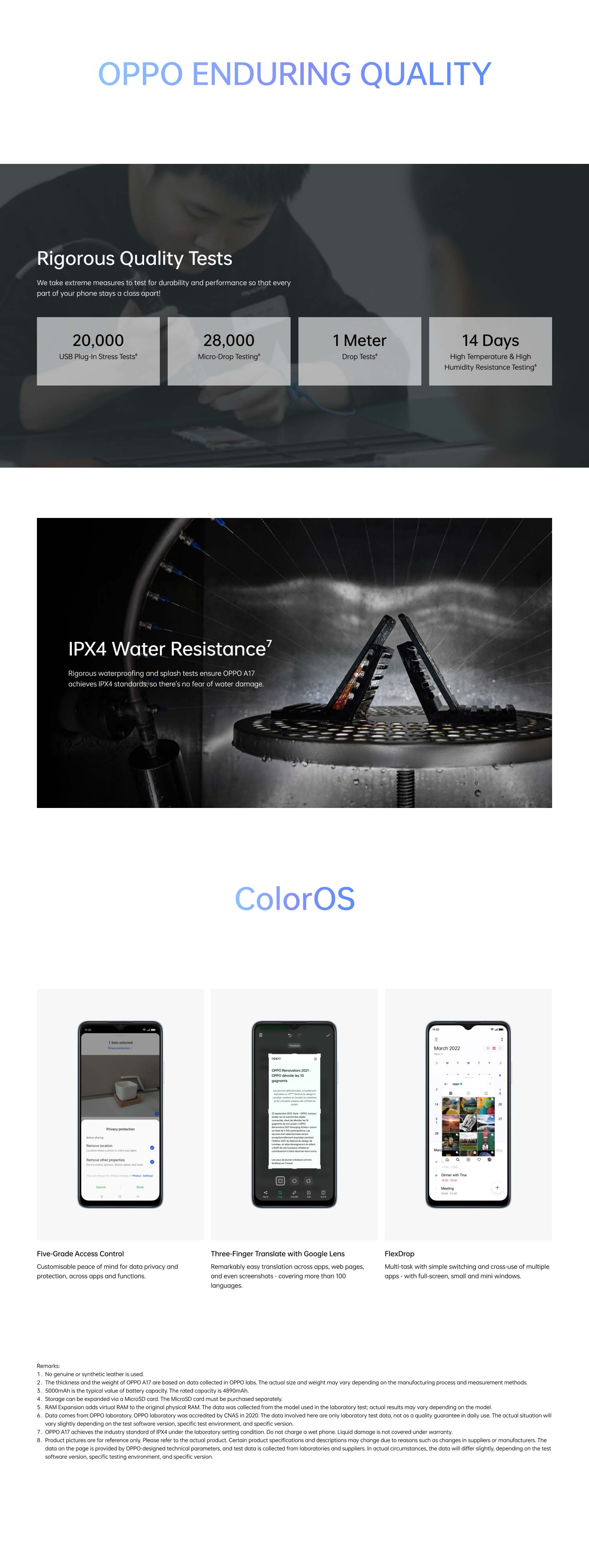 Featuring RAM and ROM Expansion and upgraded Dirac 3.0 audio, the OPPO A17 provides efficient and powerful performance.