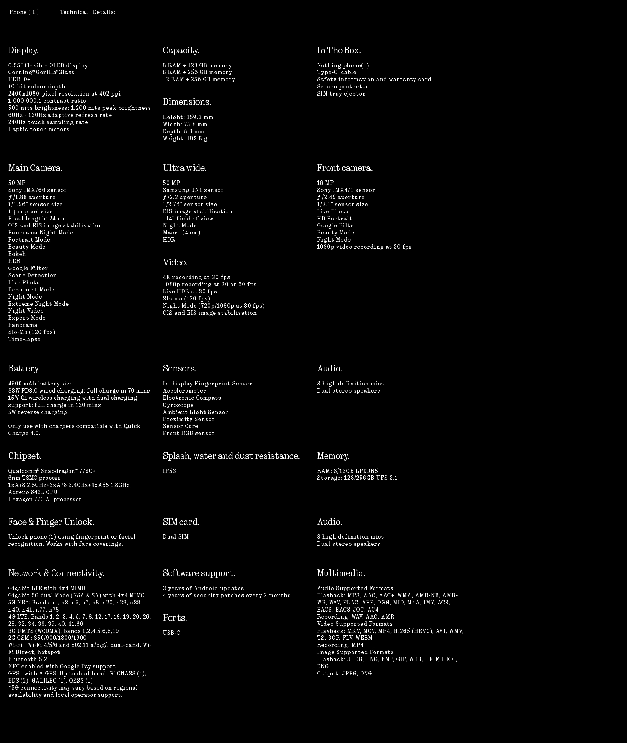 Nothing Phone (1) | 8GB + 128GB / 8GB + 256GB / 12GB + 256GB | Glyph Interface | 50MP Dual Camera | Pure Nothing OS | Snapdragon 778G+