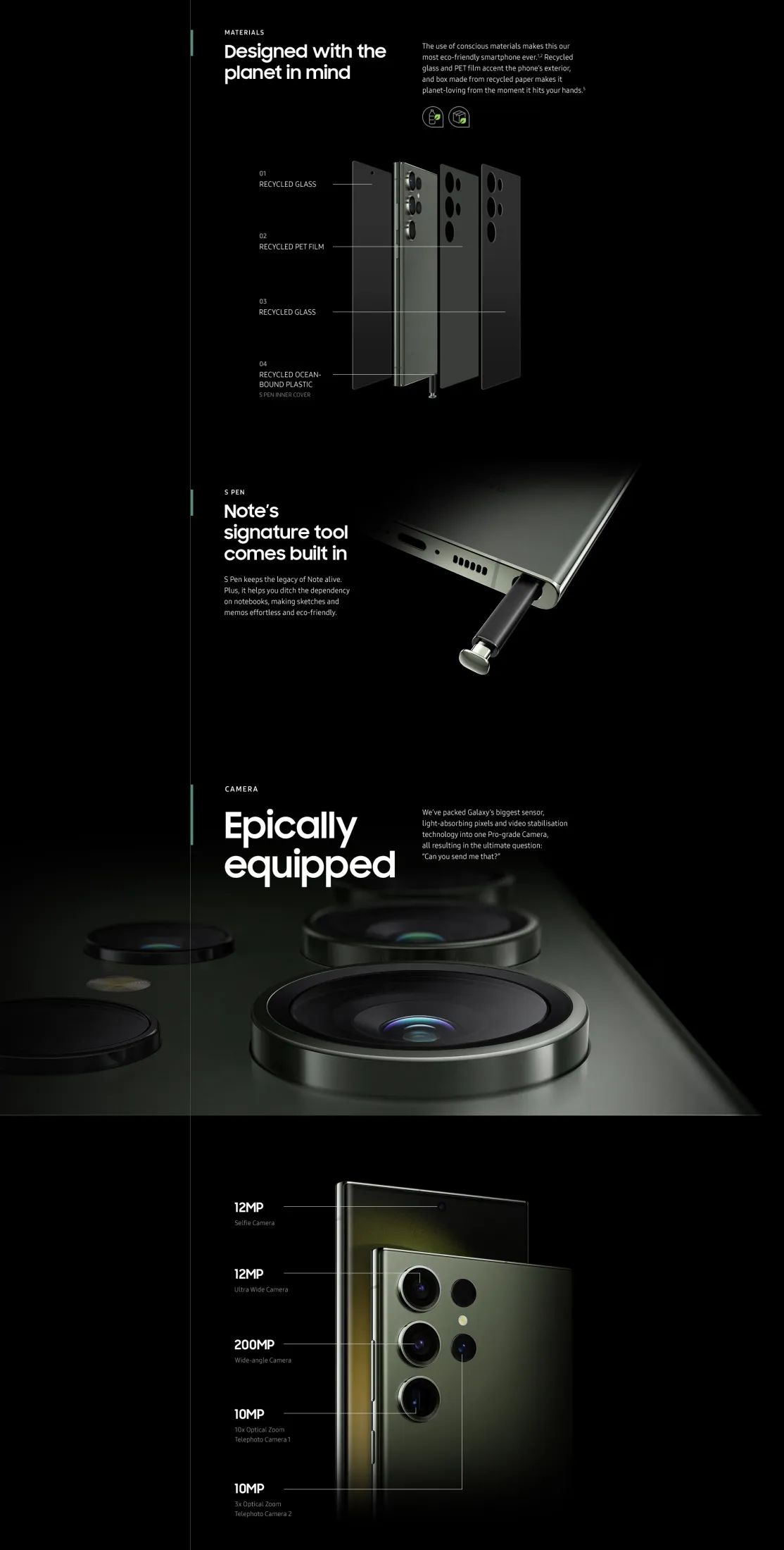 - Pro-grade Camera: 200MP Wide, 12MP Ultra Wide, 10MP Tele 3x Optical Zoom, 10MP Tele 10x Optical Zoom