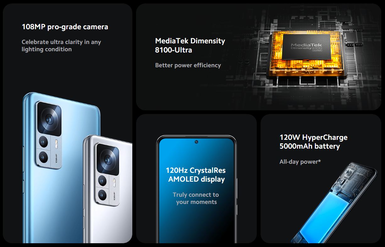 Xiaomi 12T 5G 8/256GB-Xiaomi SG 2 Years Warranty