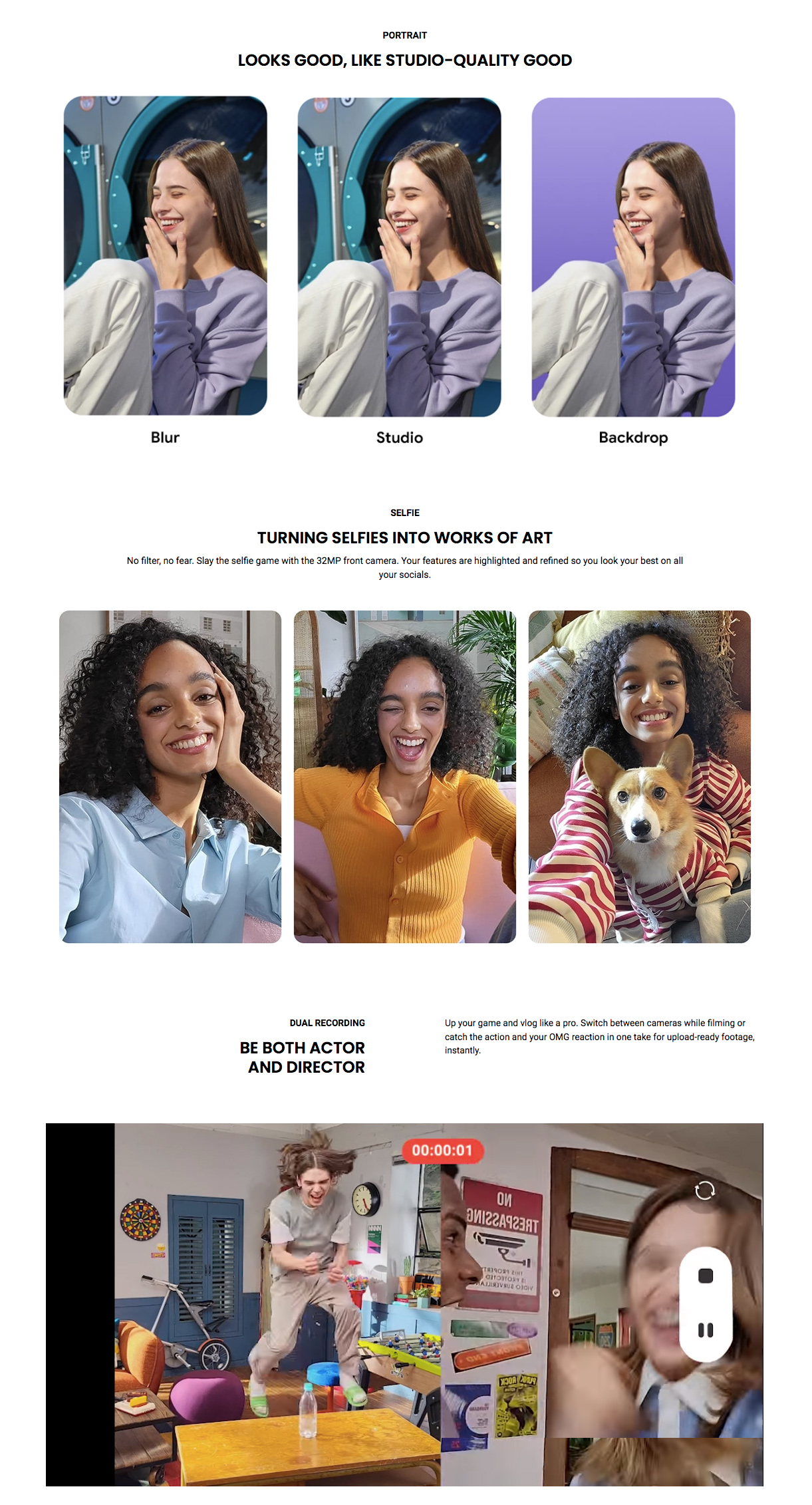 Plus, with Dual Recording, you can stay on top of the action in front of and behind you — just start recording, and your camera captures views from both lenses at the same time.