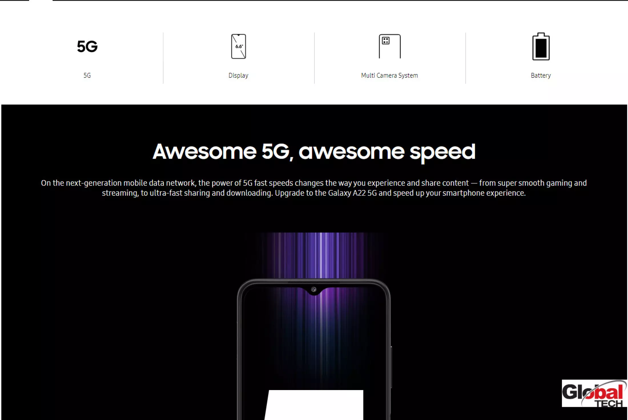 Samsung Galaxy A22 5G 128GB ROM+4GB RAM (Miễn phí: Kính cường lực+Vỏ sau)