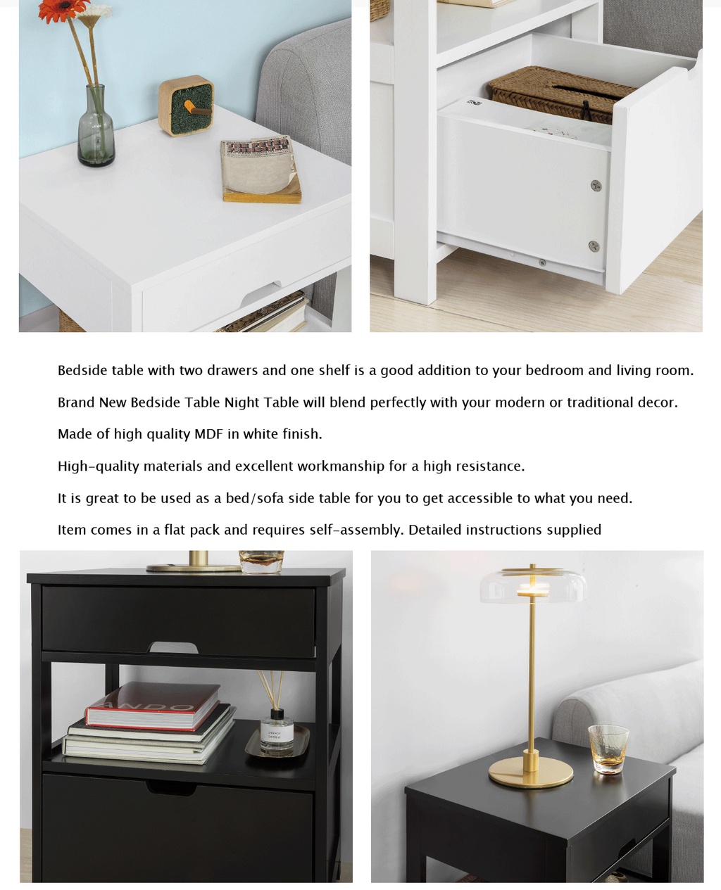 (SG STOCK)SoBuy ® FRG258-W/SCH Trang chủ Bàn cạnh gỗ Bàn cà phê với 2 ngăn kéo Trắng Đen