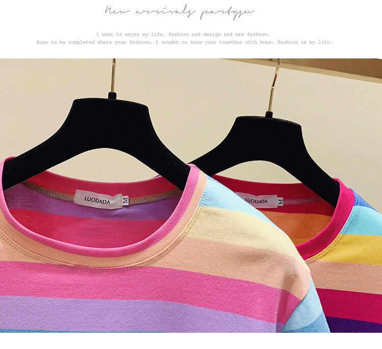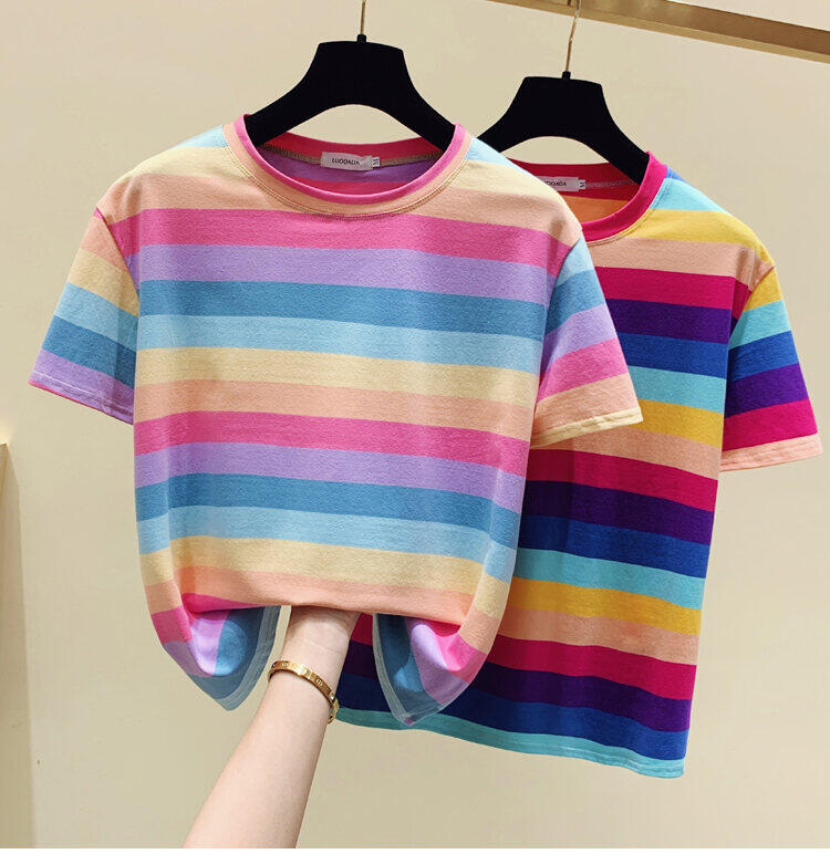 Super Popular Striped Korean Style Loose Round Neck Ins Short Sleeve T-shirt