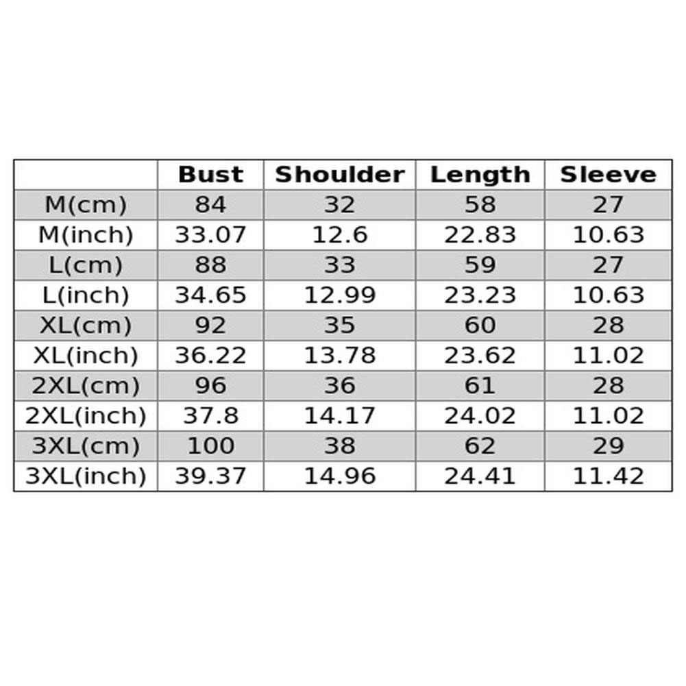 | Bust | Shoulder | Length | Sleeve | |