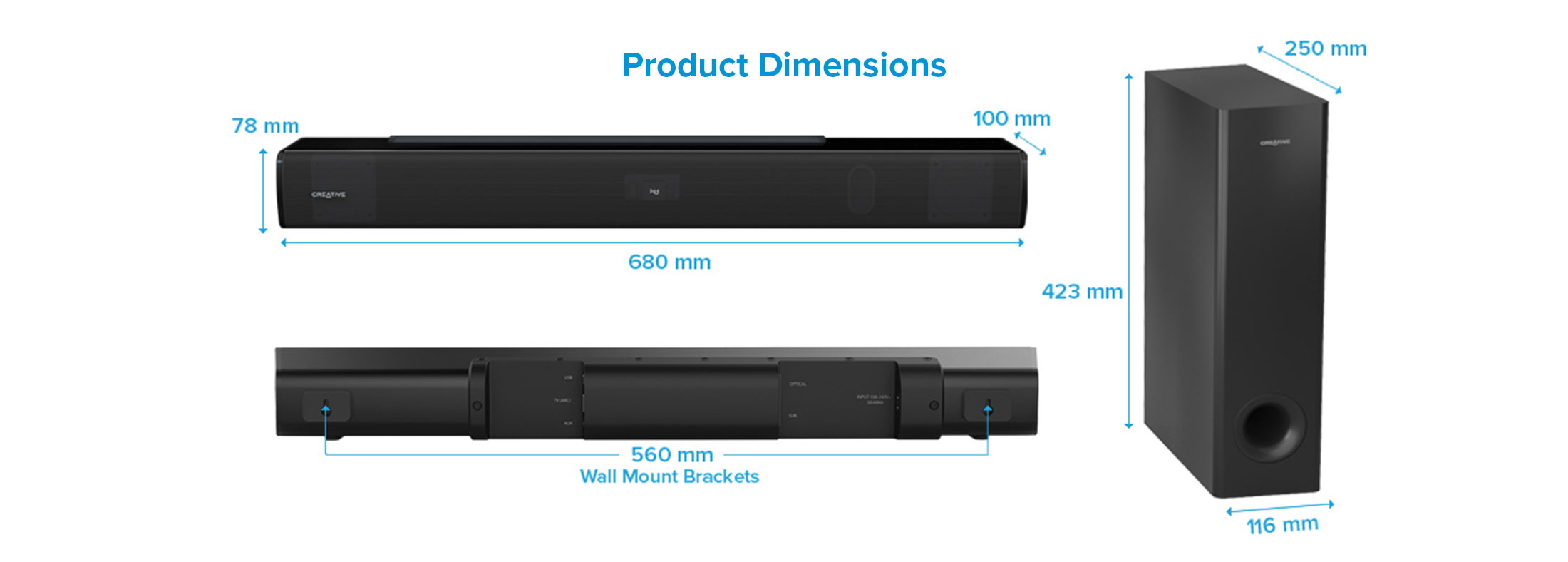 Creative Stage V2 - 2.1 Soundbar with Subwoofer, Clear Dialog and Surround by Sound Blaster, Bluetooth 5.0, TV ARC, Optical, and USB Audio, Wall Mountable, Adjustable Bass and Treble, for TV